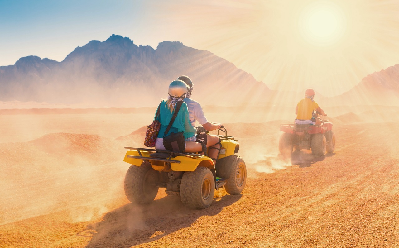 Your adventure begins with an easy pickup from your hotel in Hurghada, ensuring a smooth and comfortable start. Once you arrive at the starting point, you and your family will receive your quad bikes. After a brief safety introduction, you’ll begin your thrilling ride.